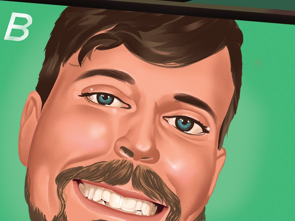 YouTuber Jimmy “MrBeast” Donaldson has transmuted an unquenchable thirst for clicks into gold. (Illustration by Richard Chance)