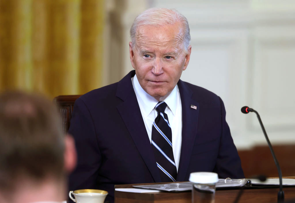 President Joe Biden speaks during a meeting in the East Room of the White House on March 12, 2024, in Washington, DC. (Kevin Dietsch / Getty Images)
