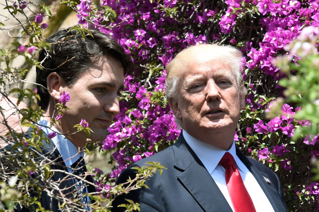 Canadian prime minister Justin Trudeau and US president Donald Trump pose for a photo on May 27, 2017, in Taormina, Sicily. (Stephane de Sakutin / AFP via Getty Images)