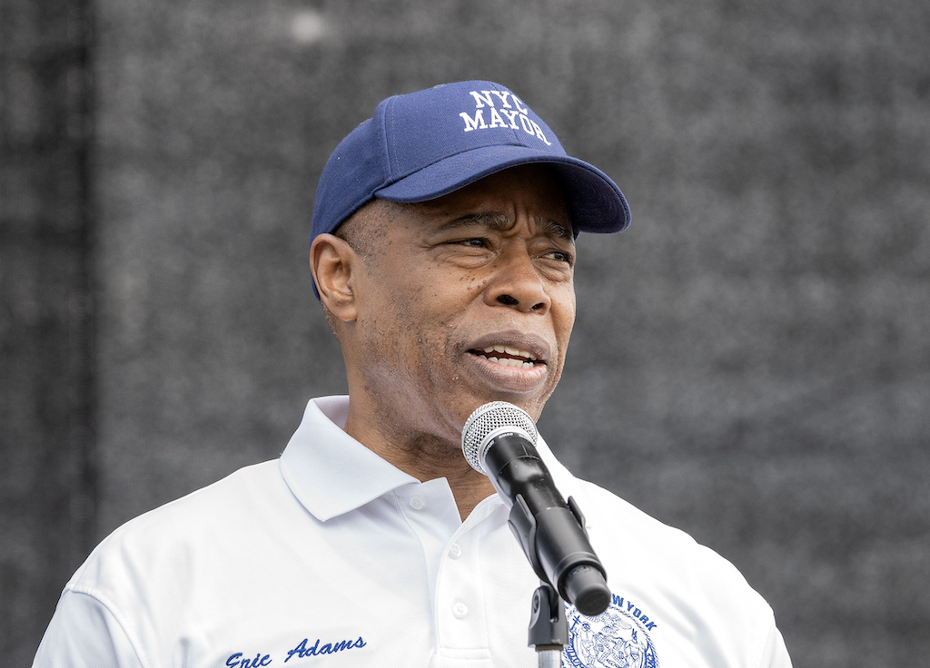 Mayor Eric Adams speaks during at Flushing Meadows Park on August 12, 2023 in New York. (Lev Radin / VIEWpress via Getty Images)