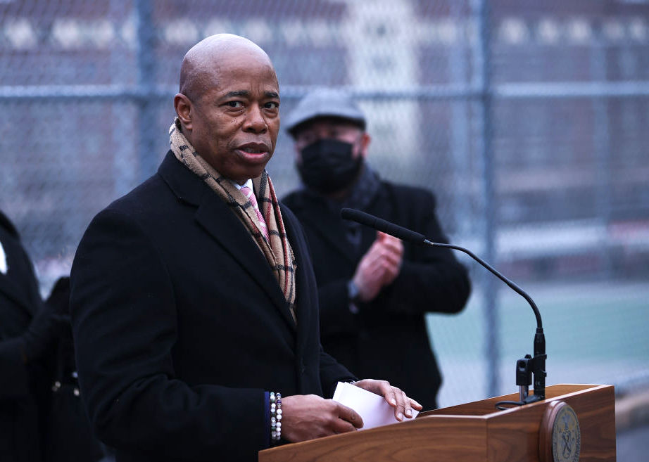 Mayor Eric Adams speaks at Concourse Village Elementary School in New York City, 2021. (Tayfun Coskun / Anadolu Agency via Getty Images)