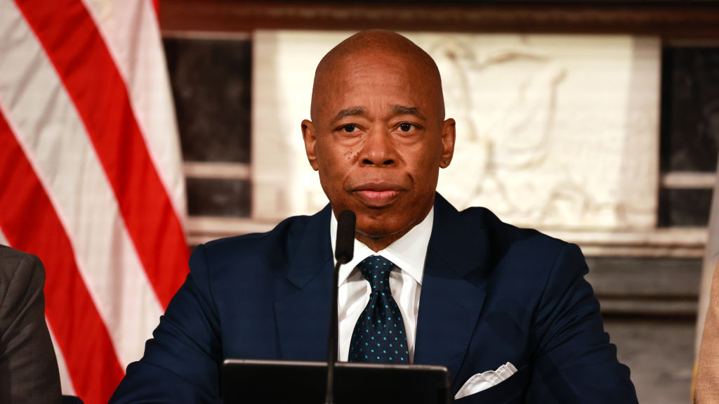 New York mayor Eric Adams at a press conference at City Hall, November 21, 2023. (Luiz C. Ribeiro for NY Daily News via Getty Images)