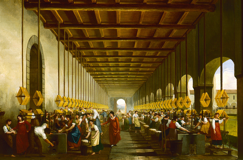 Textile mill in Bergamo, Italy, ca. 1750. (Fine Art Images / Heritage Images / Getty Images)