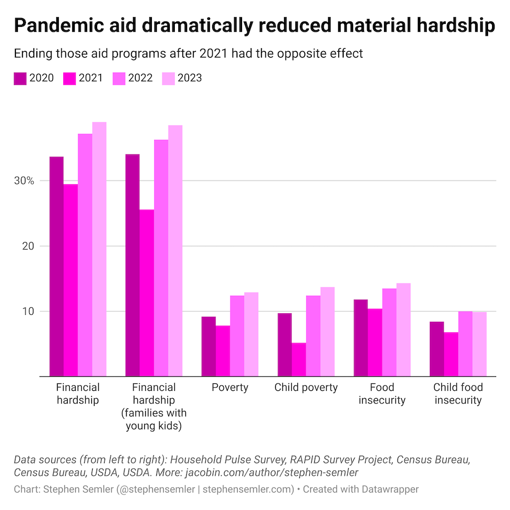 Pandemic welfare included an eviction moratorium, rental assistance, broader cash assistance, and tax credit programs. Collectively, this blunted the impact of the spiraling cost-of-living crisis. Taking that assistance away evidently cost many people their homes.