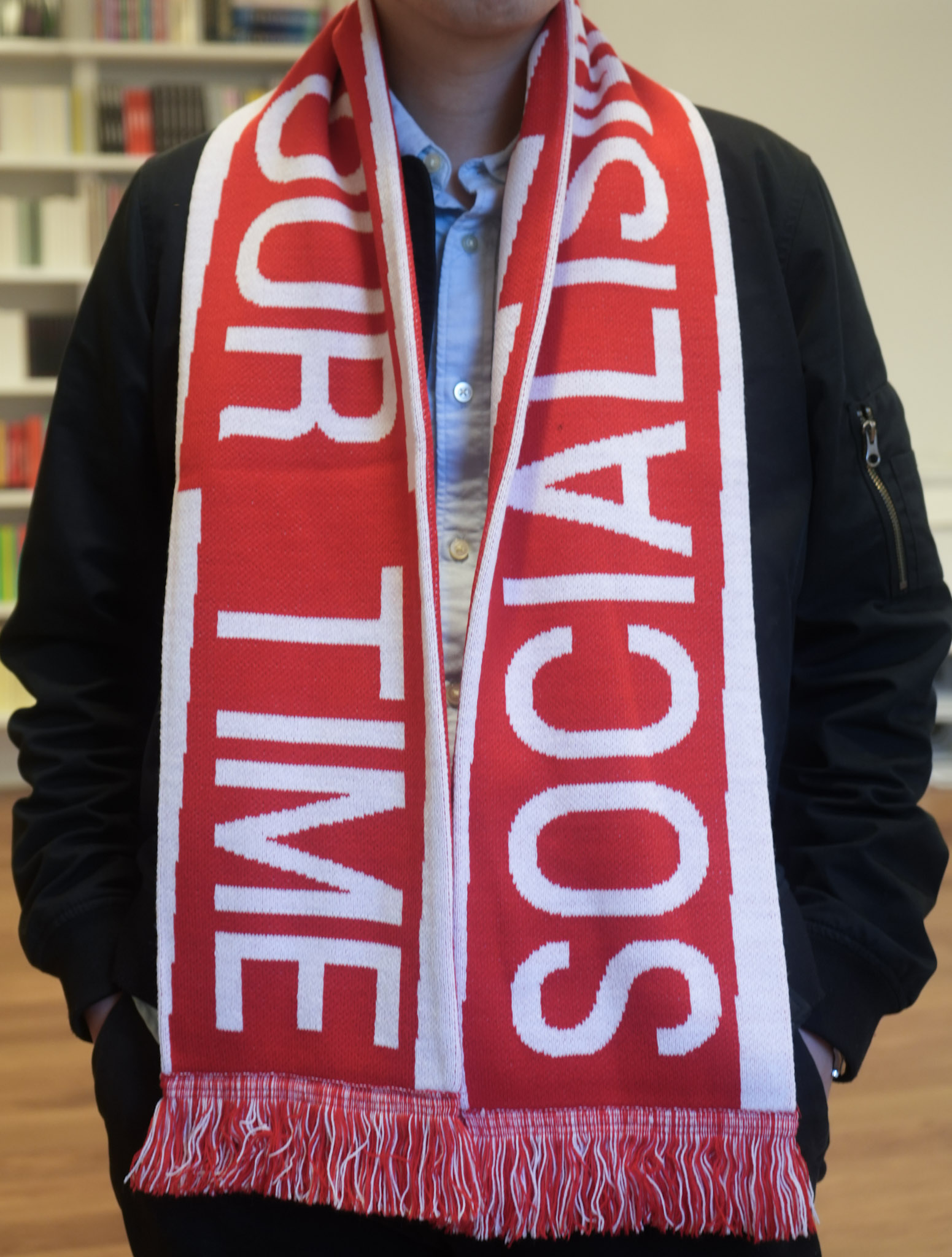 At Jacobin our motto since the beginning has been “Socialism in Our Time,” and those are the words that adorn our new limited-edition winter scarves. For soccer fans around the world, the scarf is a symbol of the power of solidarity and collective unity — core values of socialism everywhere. Keep yourself warm this winter and show your support for your favorite socialist publication. 100% acrylic, one size fits all at 7 x 67 in.