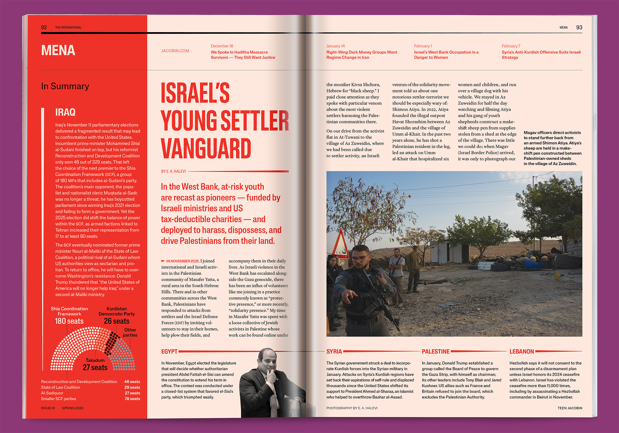 “The ‘hilltop youth’ find support and meaning working as a dedicated vanguard of settlement expansion displacing Palestinians.”