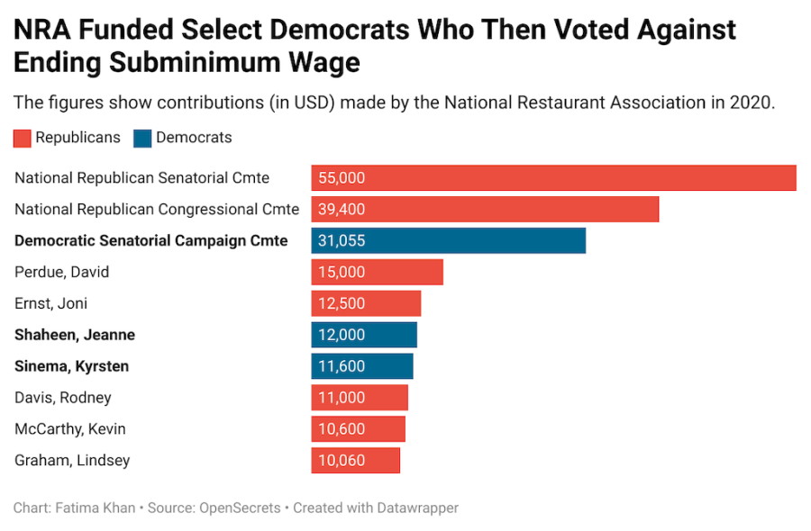 “On one side, we have a lobby of national restaurant chains, and on the other we have among the lowest-paid workers in America. This explains why the subminimum wage hasn’t increased in over thirty years,” said Saru Jayaraman of One Fair Wage.